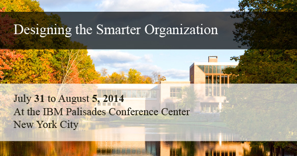 Designing the Smarter OrganizationJuly 31st to August 5th, 2014 at the Dolce IBM Palisades Conference Center near New York City.
