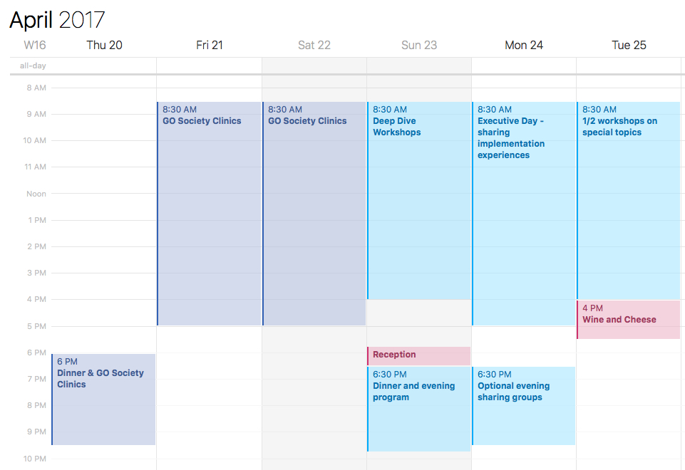 For you to gain full benefit from your conference experience, it's best to review the E-learning modules on the Global Organization Design Society's web site which will provide you with a good conceptual overview of these organization design methods.