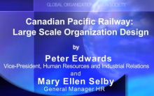 The second part of my introduction is about this case study. This organization design change involved 16,000 people, both in assessment and implementation, over twelve months. It was a significant change process. Uniquely, they chose to implement operations first, due to business reasons, before winter. We usually implement across the entire organization, but in this case, operations were prioritized. I will ask Mary Ellen to discuss the implementation soon, along with Peter's overview. Canadian Pacific is a Class One railway, one of five in North America, operating in Canada and the US. The decision for organizational change was influenced by a presentation seen by the then-Vice President of Human Resources, Andrew Shields. He invited me to speak to the executive group, who decided to start with two pilot projects in locomotive reliability centers and information technology. Following their success, they proceeded with a full organization review. Understanding the starting point is crucial in designing an organization. For Canadian Pacific, it was the physical infrastructure. Other organizations may have different starting points, such as a bank branch or, in Fisheries and Oceans Canada, the migratory pattern of salmon. The strategic decision was to operate as one integrated business, leading to the recommendation of a Stratum Seven organization, with opportunities to improve vertical alignment, functional organization, managerial practices, titling, job evaluation, and spans of control. Significant cost savings were also identified. After initiating the project, Andrew Shields retired, and Peter, coming from Canadian National Railway, took over. Peter's perspective was valuable, especially considering the change in operations management, with a new person from Canadian National Railway. I invite Peter to share his impressions and discuss the implementation.